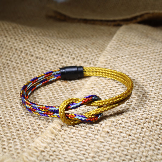 Çelik Hasır Örgü Bileklik | Denizci Düğümü Detaylı Unisex Aksesuar - Sarı -Çok Renkli