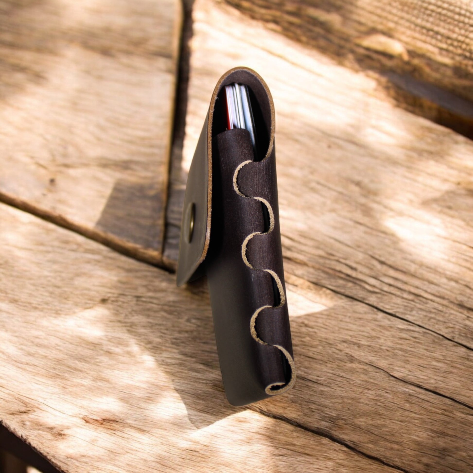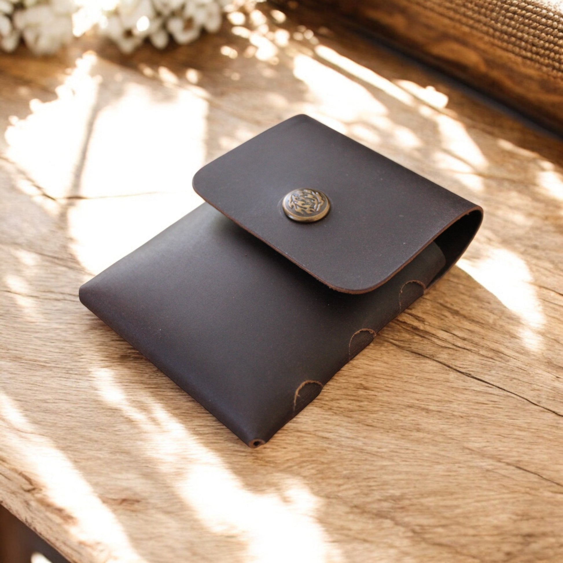 Kalitesi kanıtlanmış birinci sınıf tabaklanmış dana derisi kullanılmıştır. Ürünümüz usta ellerde kesilip işlenerek sizlere sunulmaktadır. Her bir ürün için ayrı ayrı emek verilmektedir. En kaliteli malzemeler özel teknikler ile bir araya gelmektedir. Kartlığımızın tek bölmesi bulunmaktadır. Çıtçıtlı kapağı sayesinde düşme, dökülme riski ortadan kalkmaktadır.. Ölçüleri yükseklik: 9.5cm, genişlik: 6.5cm şeklindedir. Yatay versiyonu ise yükseklik: 8 cm genişlik: 10 cm olarak üretilmiştir. Özel bir kesim ve teknik uygulanarak dikiş atılmadan üretilmiştir. Minimal tasarımı sayesinde günlük ihtiyaçlar için gerekli bir miktar nakit ve birkaç kart çok rahat bir şekilde taşınabilir. Kullandıkça kendine özgü bir kimlik kazanacak ve gün geçtikçe göz kamaştırmaya devam edecektir. Kalıcı bir hediye için idealdir. Erkek ve Kadın kullanımına uygundur.